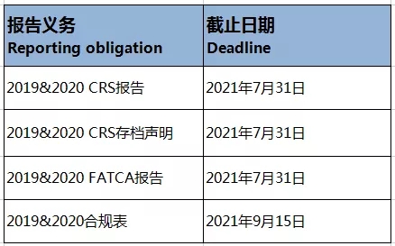 申報(bào)開曼公司/開曼群島FATCA和CRS的截止日期(201920):