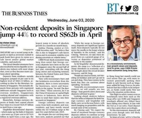-根據(jù)新加坡金融管理局的數(shù)據(jù),今年4月新加坡本地銀行的外幣存款比去年同期增長近兩倍,達(dá)到創(chuàng)紀(jì)錄的270億新元,而非居民存款飆升44%,達(dá)到620億新元,達(dá)到1991年有記錄以來的最高水平。